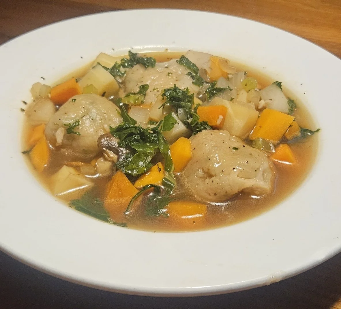 Root vegetables, kale, mushrooms, aromatics, herbs and a rich stock make a for warming, comforting stew with our herbed dumplings. 12